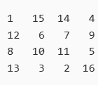 - 4×4 마방진 각 행, 열, 대각선의 합: 34